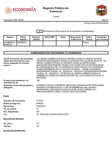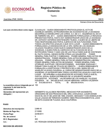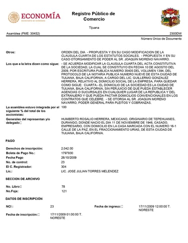 + Fecha de constitución: 17 de noviembre del 2009.